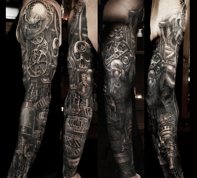 My first dip back into that arena in years was when an earlier customer of mine wanted a machinery-steampunk-inspired sleeve. The meticulous detail and my love of machinery inspired me to approach the project with a new perspective.